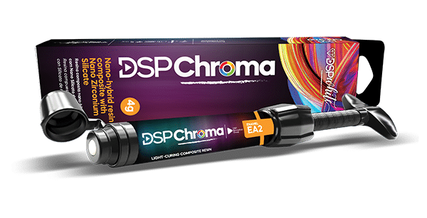 DSP Chroma es un material restaurador dental fotopolimerizable, llamado resina compuesta, universal; indicado para restauraciones de toda clase en dientes anteriores y posteriores mediante el sistema incremental.